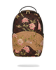 Dimensions: 18" x 6" x 11.5" • Front zipper pocket • Side pockets • Zippered Stash pocket • Separate velour sunglass compartment • Ergonomic mesh back padding • Adjustable Straps for custom sizing • Gold zippers with metal hardware • Metal "Sprayground Authentic" badge • Slide through back sleeve connects to carry-on luggage to free your hands