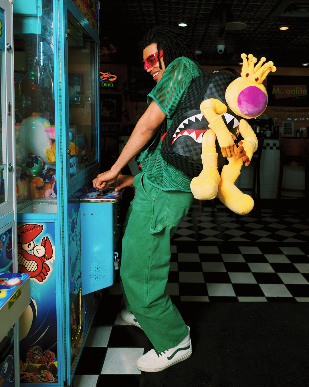 Dimensions: 18" x 6" x 11.5" • Front zipper pocket • Side pockets • Zippered Stash pocket • Separate velour sunglass compartment • Ergonomic mesh back padding • Adjustable Straps for custom sizing • Gold zippers with metal hardware • Metal "Sprayground Authentic" badge • Slide through back sleeve connects to carry-on luggage to free your hands
