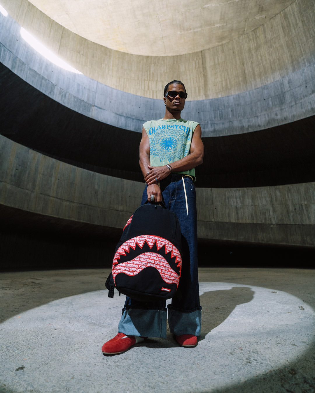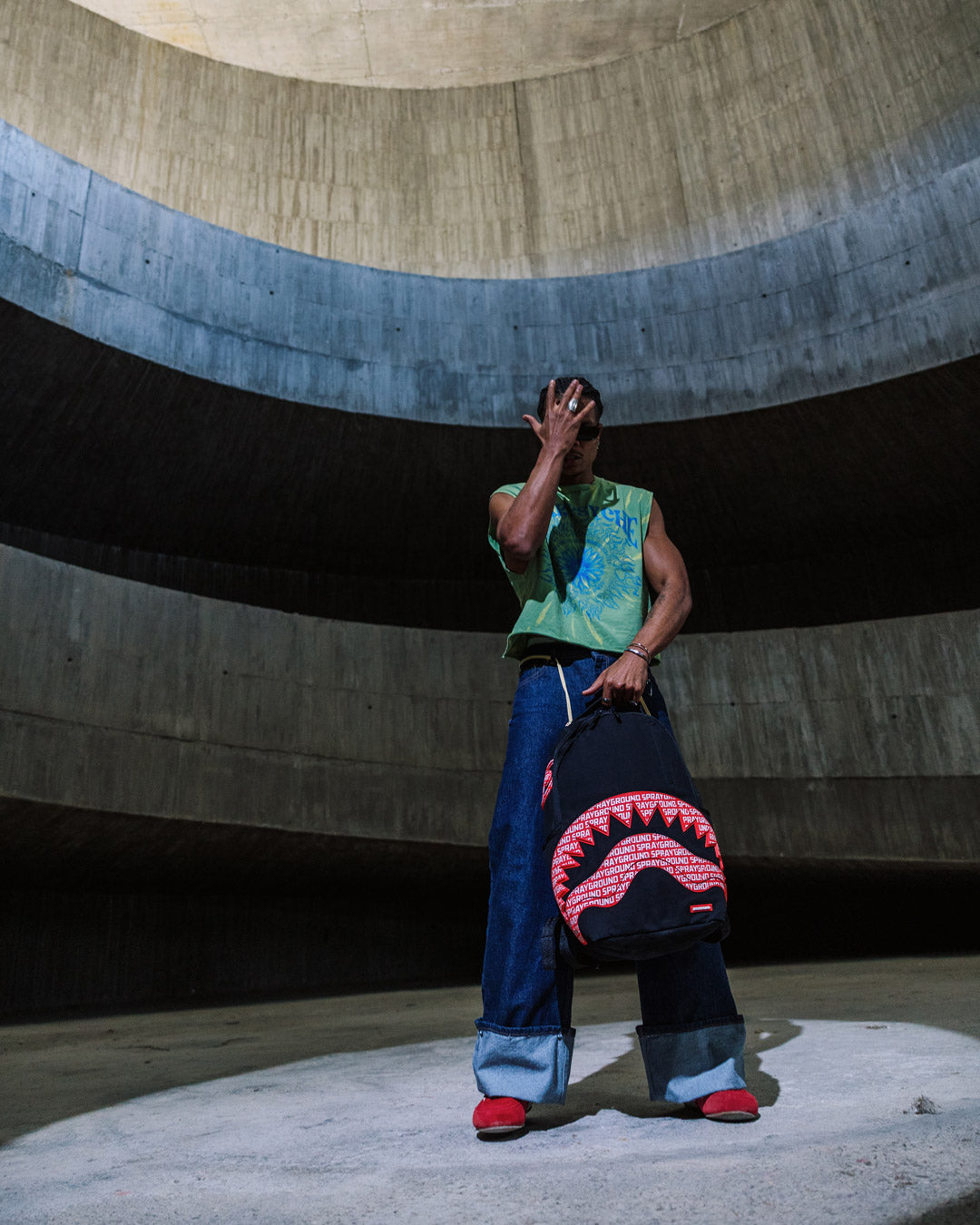 Dimensions: 18" x 6" x 11.5" • Front zipper pocket • Side pockets • Zippered Stash pocket • Separate velour sunglass compartment • Ergonomic mesh back padding • Adjustable Straps for custom sizing • Gold zippers with metal hardware • Metal "Sprayground Authentic" badge • Slide through back sleeve connects to carry-on luggage to free your hands
