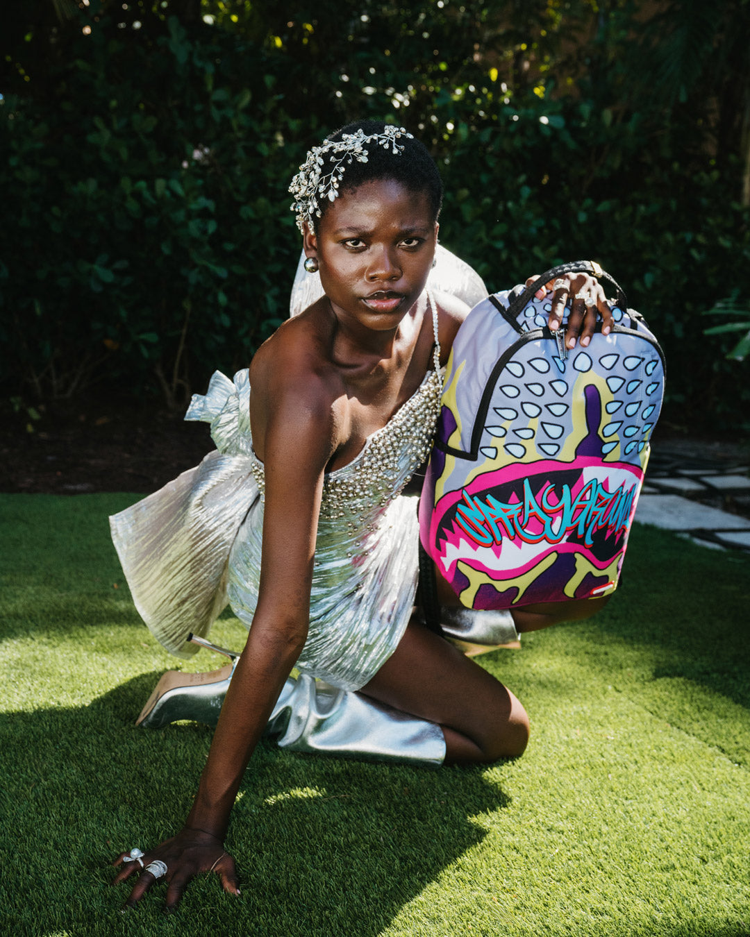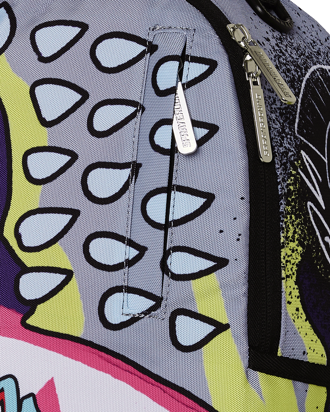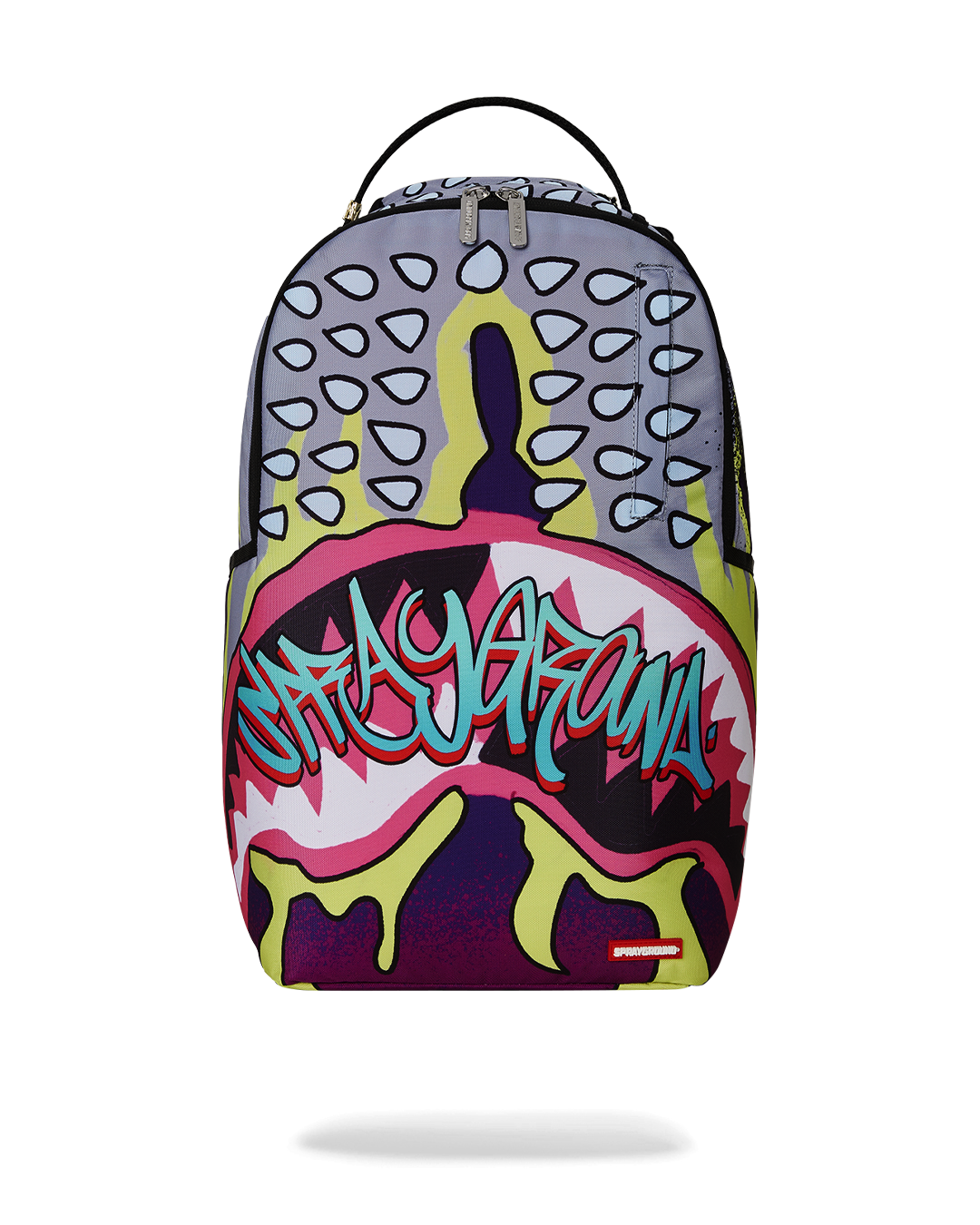 Dimensions: 18" x 6" x 11.5" • Front zipper pocket • Side pockets • Zippered Stash pocket • Separate velour sunglass compartment • Ergonomic mesh back padding • Adjustable Straps for custom sizing • Gold zippers with metal hardware • Metal "Sprayground Authentic" badge • Slide through back sleeve connects to carry-on luggage to free your hands