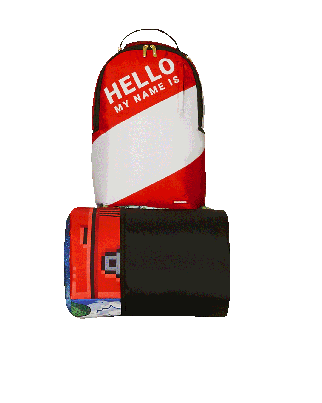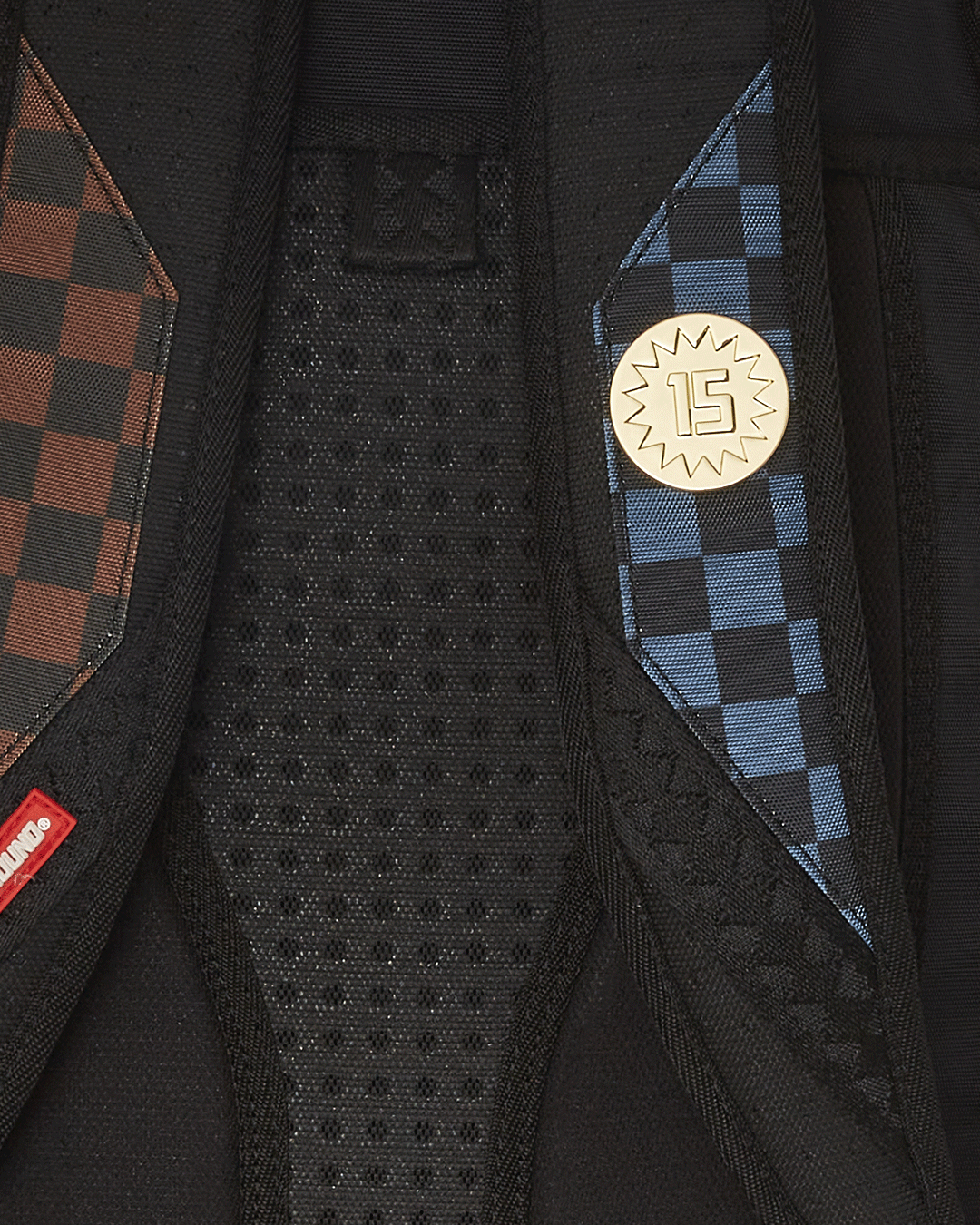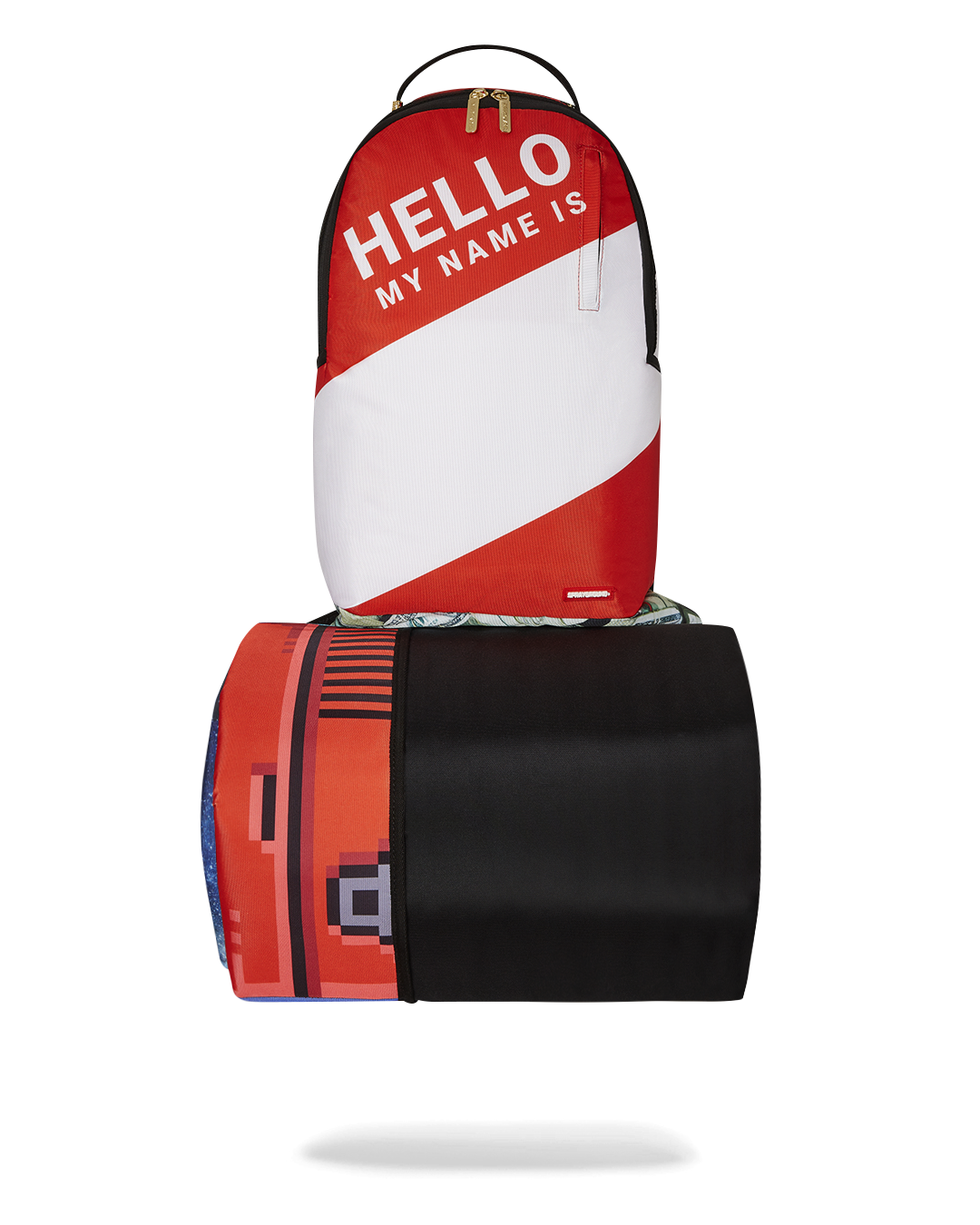Dimensions: 18" x 6" x 11.5" • Front zipper pocket • Side pockets • Zippered Stash pocket • Separate velour sunglass compartment • Ergonomic mesh back padding • Adjustable Straps for custom sizing • Gold zippers with metal hardware • Metal "Sprayground Authentic" badge • Slide through back sleeve connects to carry-on luggage to free your hands
