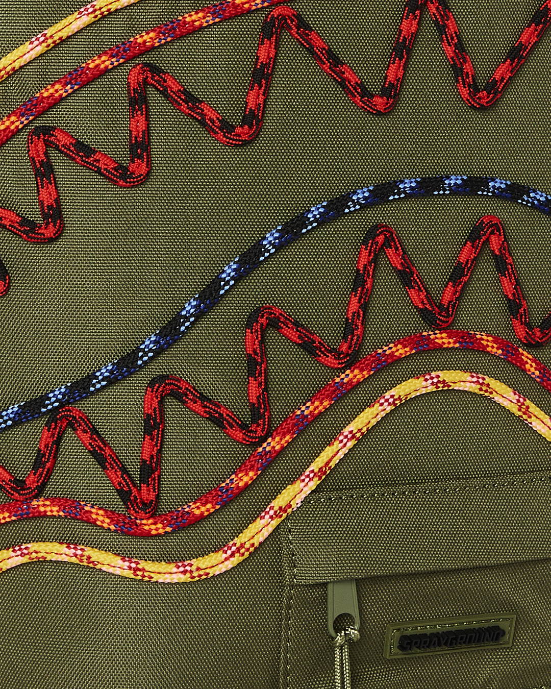 Dimensions: 18" x 6" x 11.5" • Front zipper pocket • Side pockets • Zippered Stash pocket • Separate velour sunglass compartment • Ergonomic mesh back padding • Adjustable Straps for custom sizing • Gold zippers with metal hardware • Metal "Sprayground Authentic" badge • Slide through back sleeve connects to carry-on luggage to free your hands