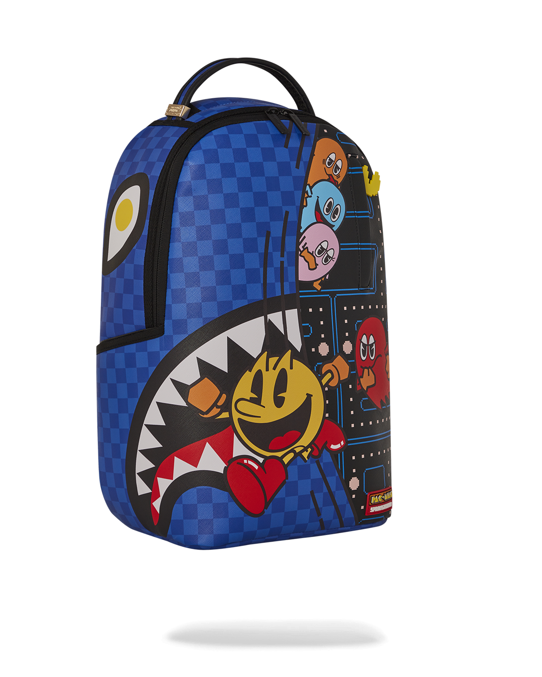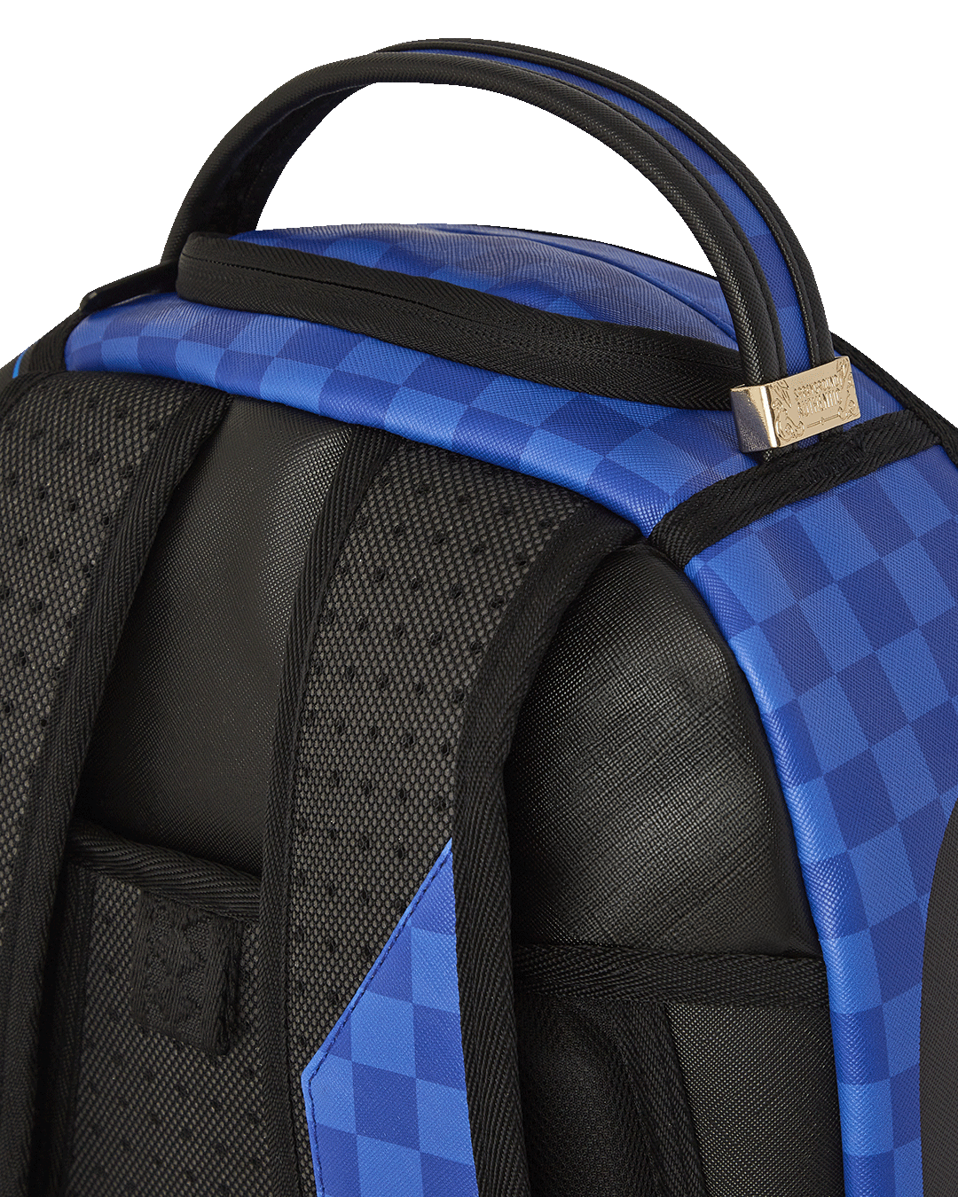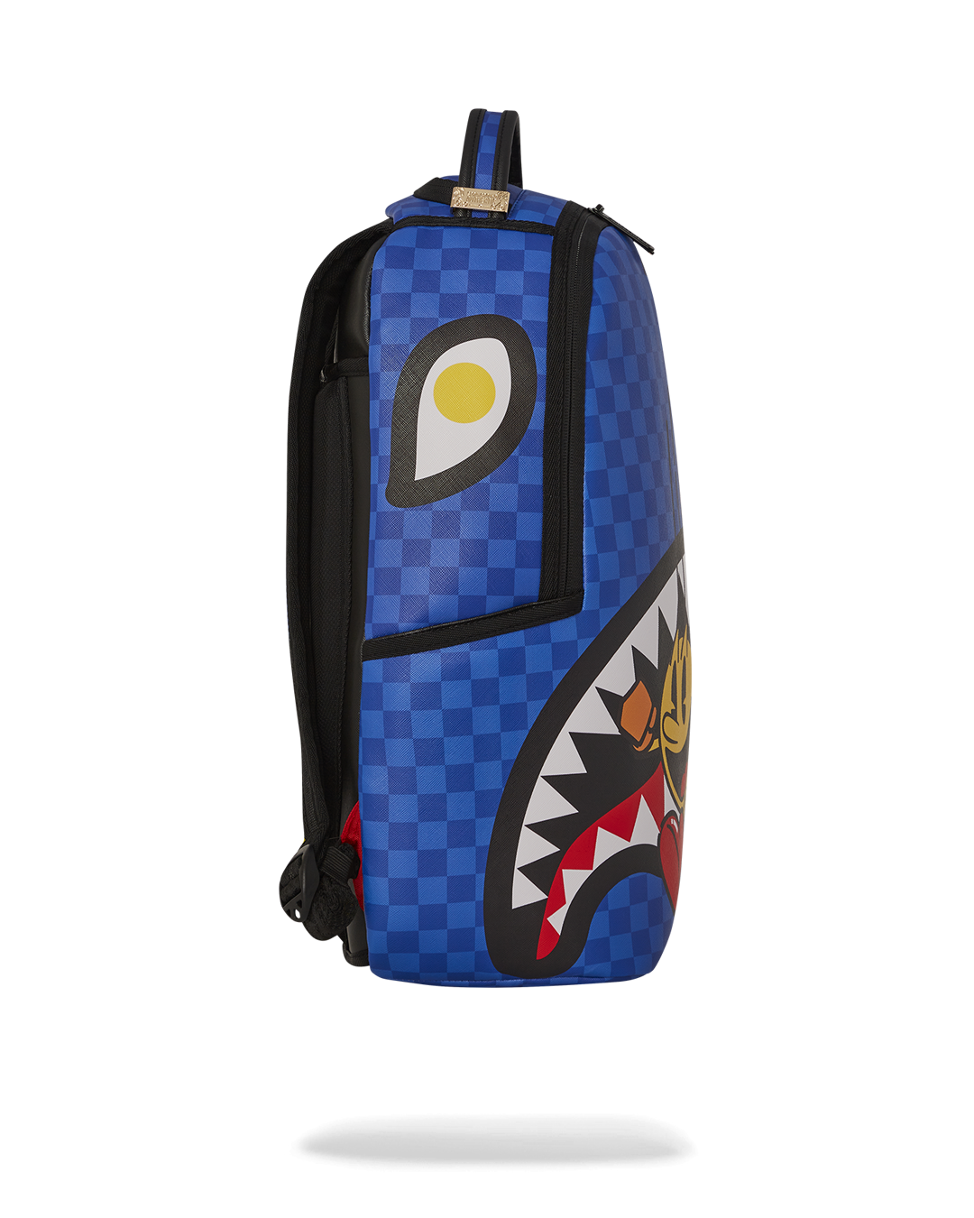 Dimensions: 18" x 6" x 11.5" • Front zipper pocket • Side pockets • Zippered Stash pocket • Separate velour sunglass compartment • Ergonomic mesh back padding • Adjustable Straps for custom sizing • Gold zippers with metal hardware • Metal "Sprayground Authentic" badge • Slide through back sleeve connects to carry-on luggage to free your hands