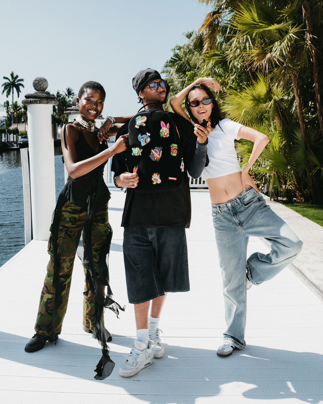 Dimensions: 18" x 6" x 11.5" • Front zipper pocket • Side pockets • Zippered Stash pocket • Separate velour sunglass compartment • Ergonomic mesh back padding • Adjustable Straps for custom sizing • Gold zippers with metal hardware • Metal "Sprayground Authentic" badge • Slide through back sleeve connects to carry-on luggage to free your hands