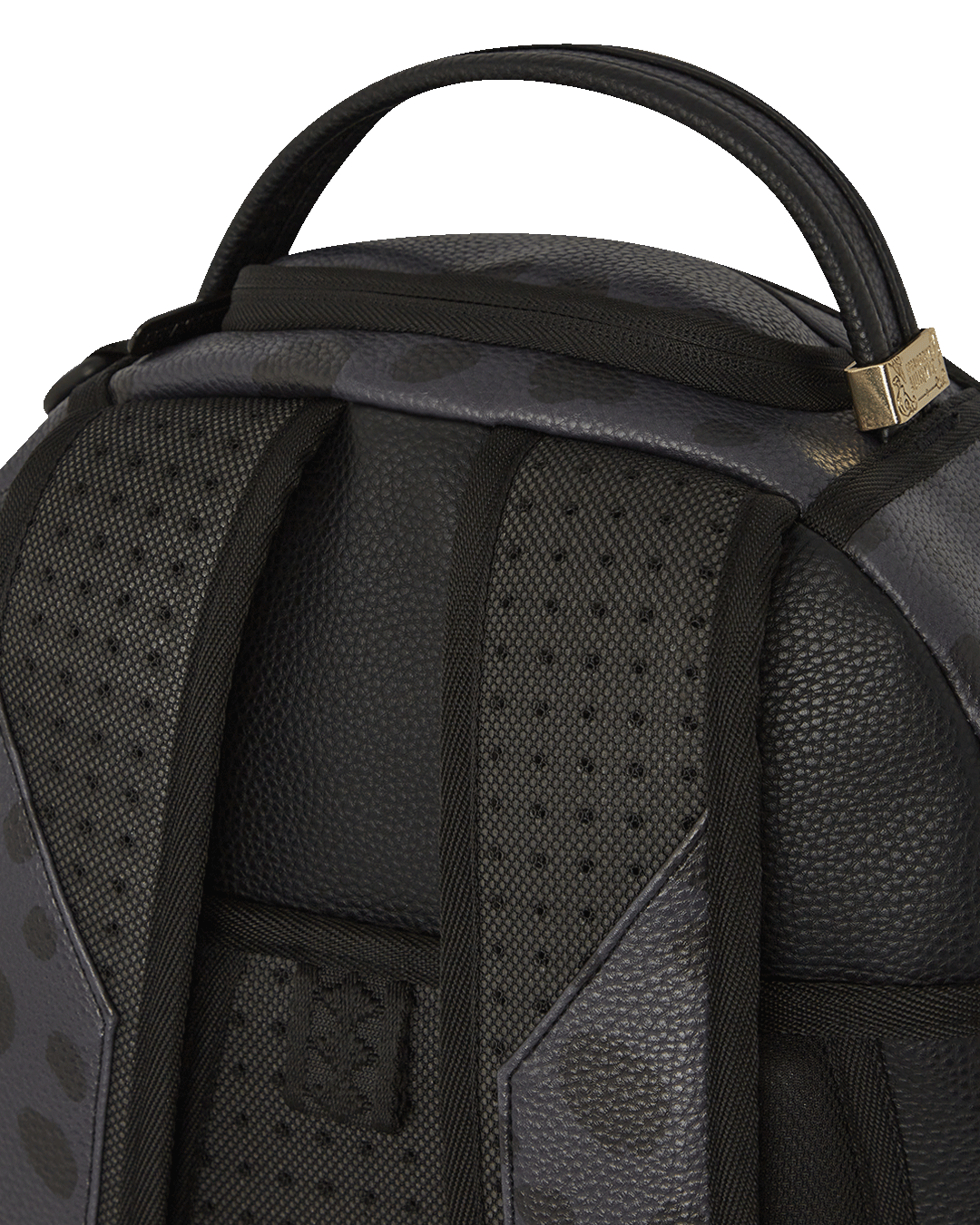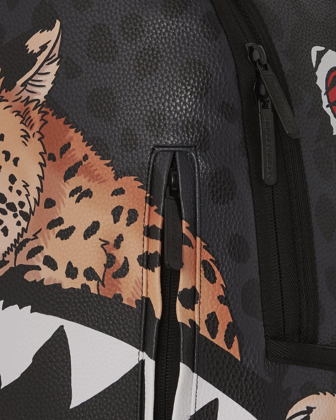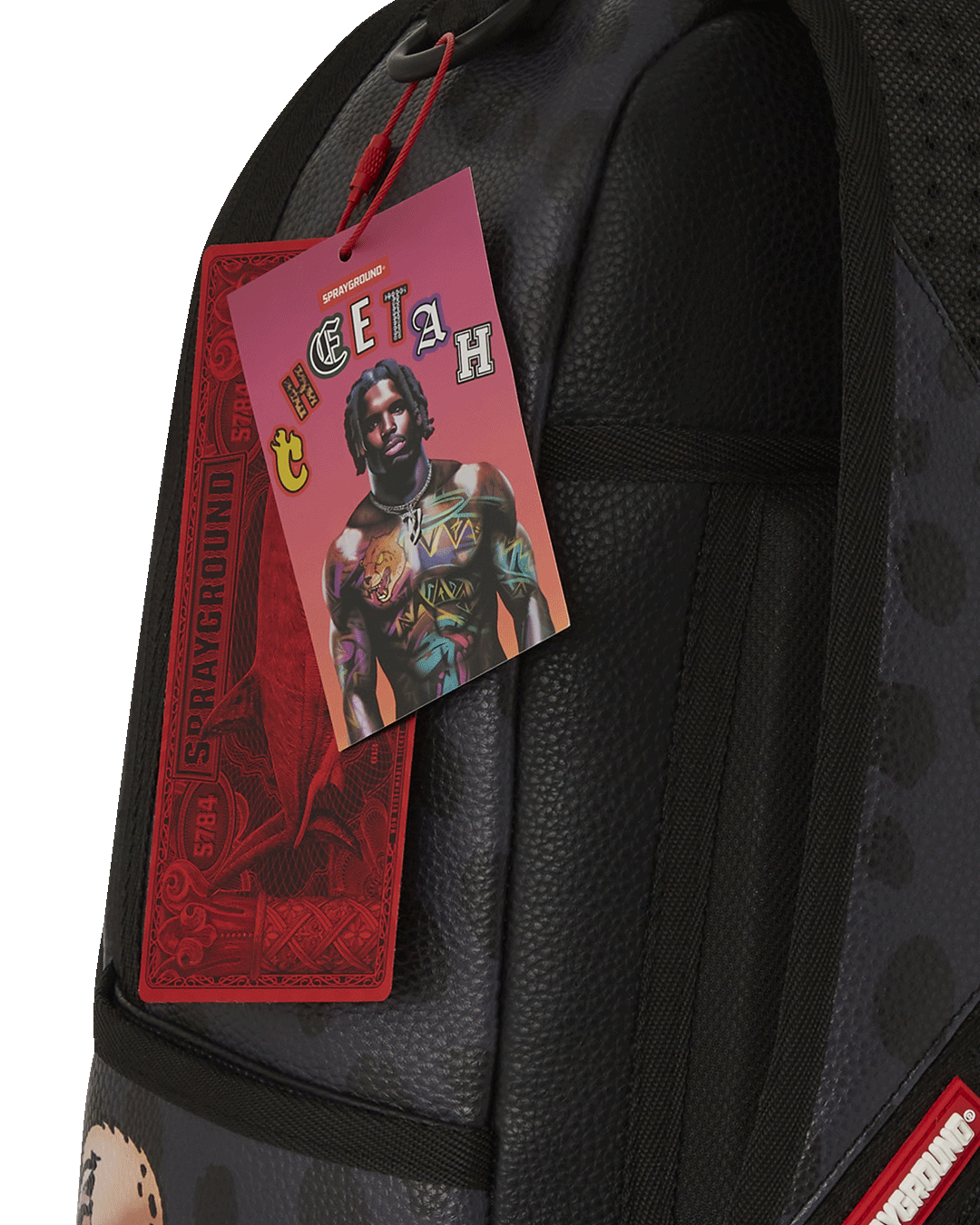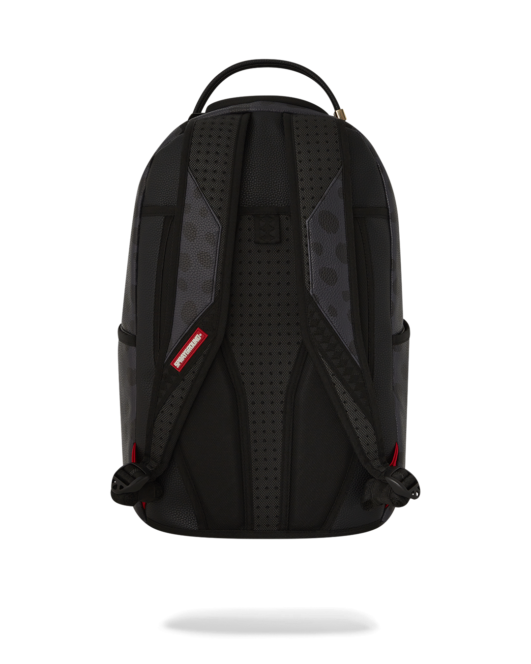 Dimensions: 18" x 6" x 11.5" • Front zipper pocket • Side pockets • Zippered Stash pocket • Separate velour sunglass compartment • Ergonomic mesh back padding • Adjustable Straps for custom sizing • Gold zippers with metal hardware • Metal "Sprayground Authentic" badge • Slide through back sleeve connects to carry-on luggage to free your hands